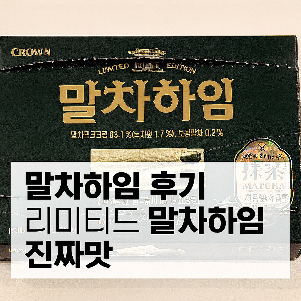 🍵 크라운 말차하임 솔직 후기|리미티드 말차 과자요즘 말차가 대유행이죠?딸아이가 말차 시리즈 중에 ‘말차하임’을 이야기 하며 먹어보고 싶다 하더라구요~마침 마트에 갔는데 리미티드 말차하임이 보여냉큼 집어 왔습니다^^ 패키지 디자인부터 짙은 녹색과골드 포인트가 고급스러운 느낌을 주었고,리미티드 에디션이라는 문구가 기대감을 더욱 높여주네요~(약간 일본충 과자처럼 보이더라구요^^) 제품을 열자마자 진짜 말차 향이 은은하게 느껴졌어요. ✔ 첫 한입에서 바로 느껴지는 깊은 말차향웨이퍼는 바삭하면서도 단단함이 쌀짝 있었고안쪽에 진한 녹색의 말차 초콜렛이 들어있어다른 과자들의 비해 말차맛이 진해말차하임 특유의 쌈싸름한 향과 달콤함이잘 느껴지더라구요^^ ✔ 달콤함보다 ‘말차 풍미’가 강조된 맛말차하임 응용버전으로말차..