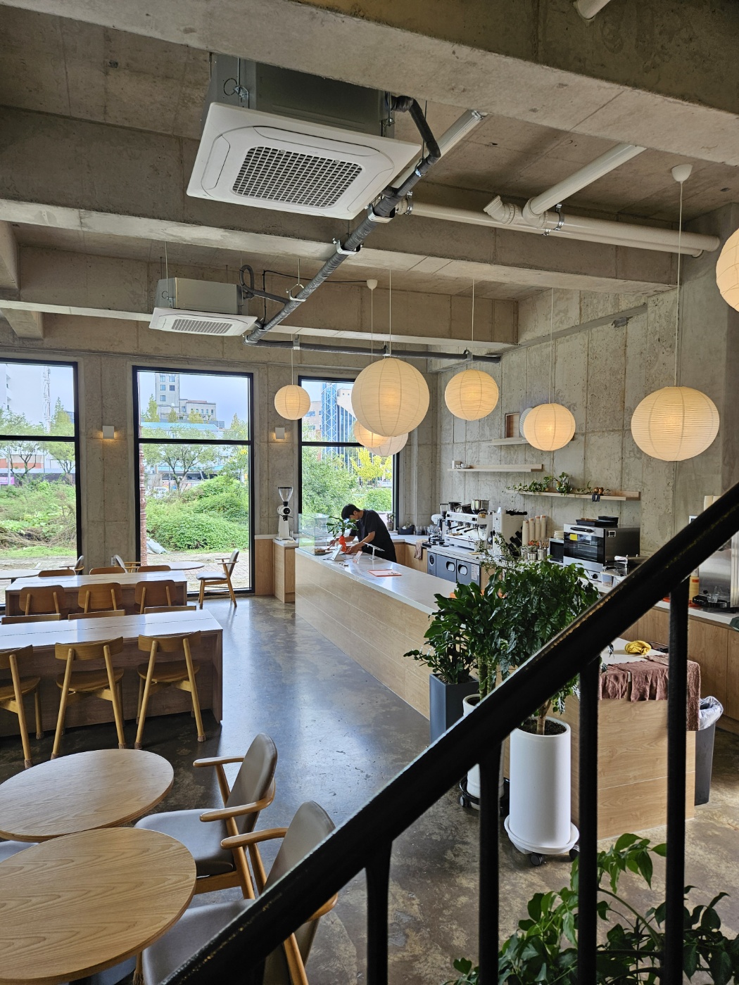 늦가을의 공기가 차분히 스며드는 오후,따뜻한 커피 한 잔이 생각나 조용한 카페를 찾았습니다통창 너머로 들어오는 햇살, 은은한 음악, 그리고 향긋한 라떼.그 모든 것이 완벽하게 어우러진 시간의 기록이에요. 카페 내부는 콘크리트 벽과 원목 가구가 조화를 이루며 심플하지만 세련된 분위기를 자아냅니다.천장에는 종이 램프들이 따듯한 빛을 내고, 창문 밖으로는 초록빛 나문들이 보여서 도심 속에서도 자연의 여유를 느낄 수 있었어요. "공간의 여백과 자연이 주는 편안함이란, 이런 걸까." 2층은 좌석 간 간격이 넓고, 조용히 대화하거나노트북 작업하기에도 좋았어요특히 자연광이 예쁘게 들어오는 창가 자리에서 사진을 찍으면 어디서 찍어도 인생샷이 될것 같았어요~ 남편이 시킨 시그니처커피와 제가 시킨 코코 슈페너~동굴동굴 ..