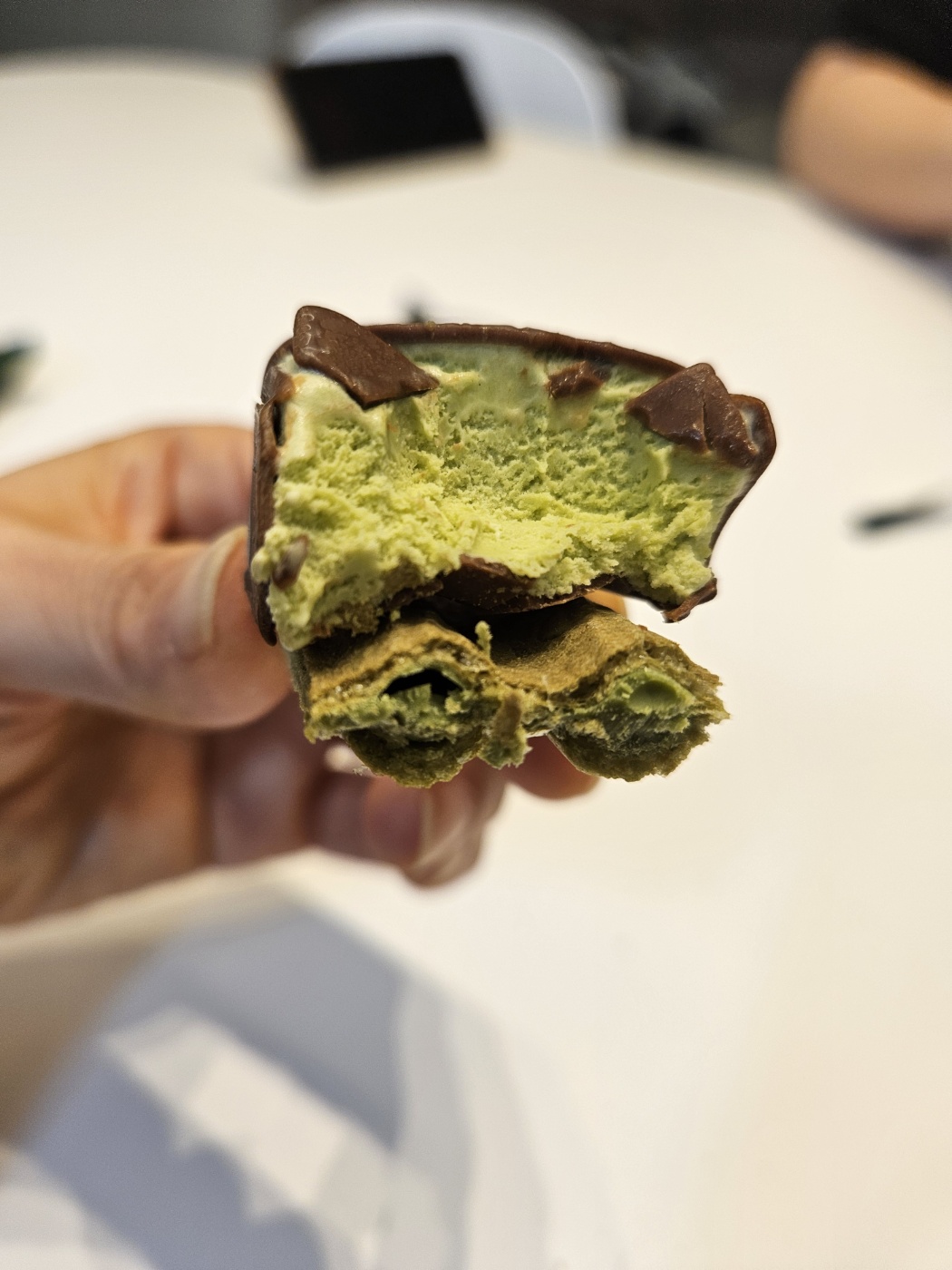 안쪽에 진한 녹색의 말차 초콜렛이 들어있어