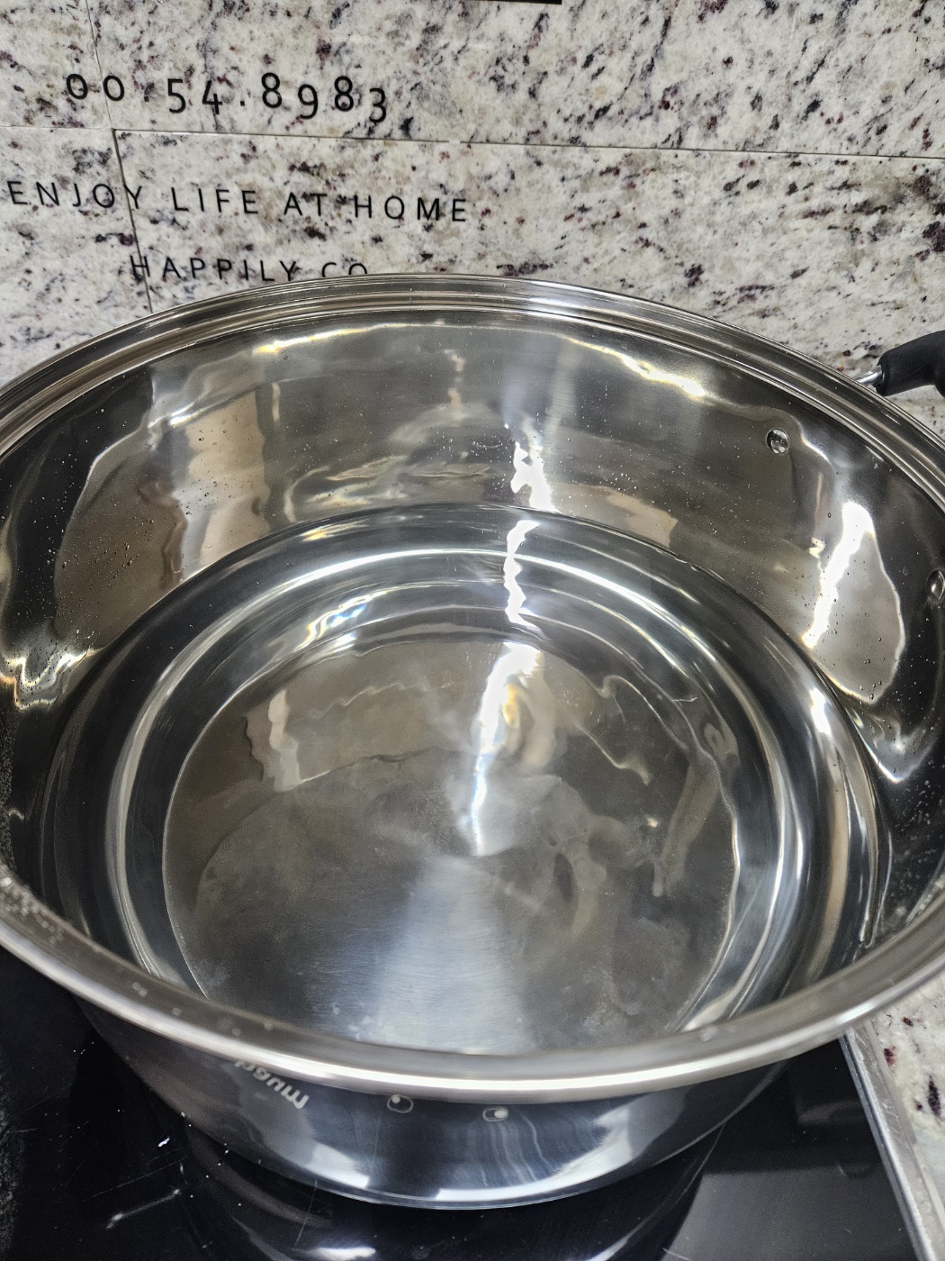 넓은 냄비에 물을 넉넉히 담아 강한 불에서 끓입니다.