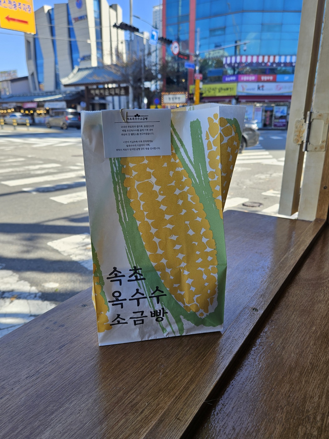 그 위에는 ‘속초옥수수소금빵’이라는 글씨가 정성스럽게 새겨져 있네요~