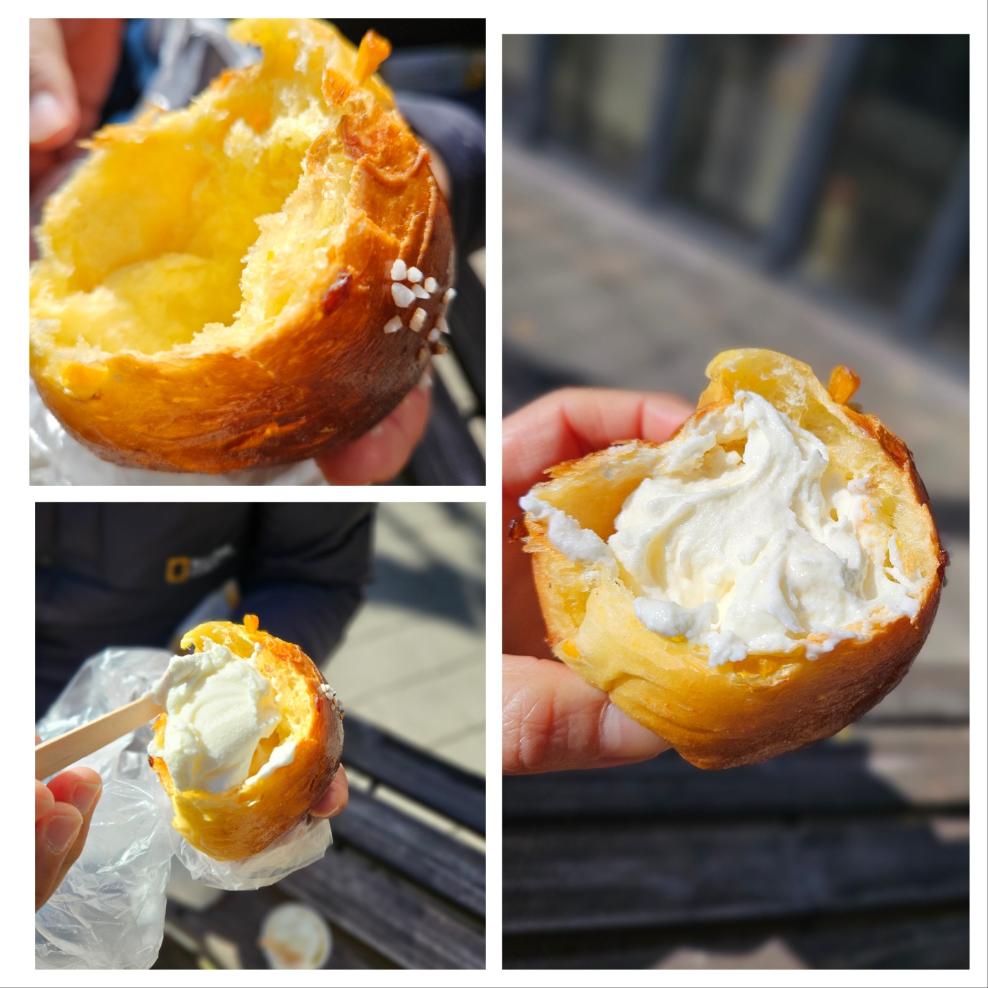 본연의 맛을 느끼고 나서 소금빵 속에 리뷰로 받은 아이스크림을 가득 담아 보았어요~