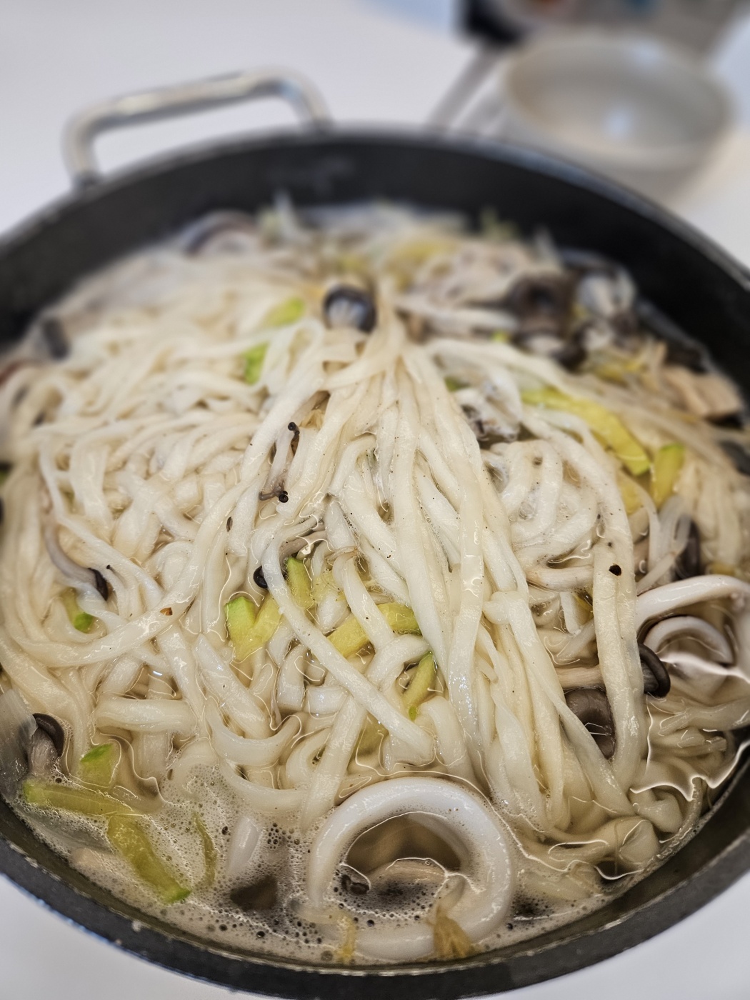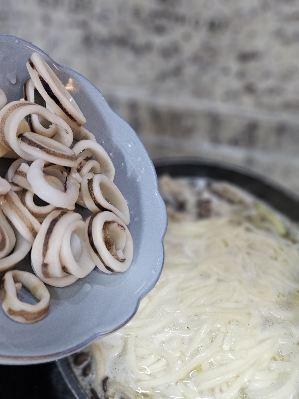 오징어 칼국수 국물이 더욱 깊어집니다.