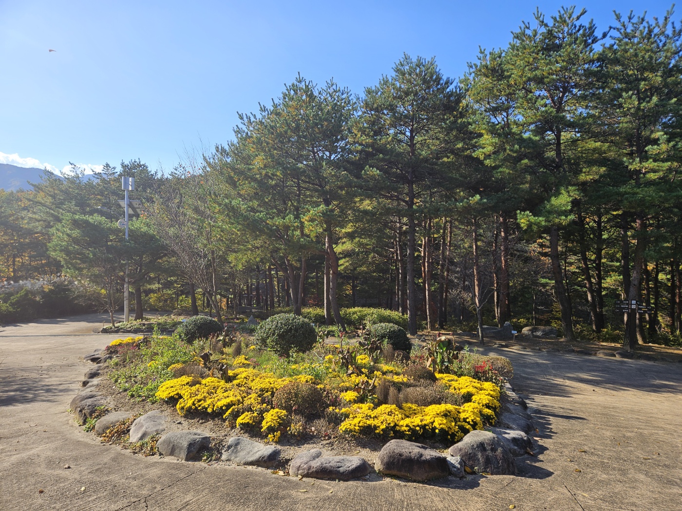 길을 따라가면 노란 국화가 둥글게 모여 반겨 줍니다. 그 앞에서 숨을 크게 들이마시니 향기와 흙냄새가 섞여
