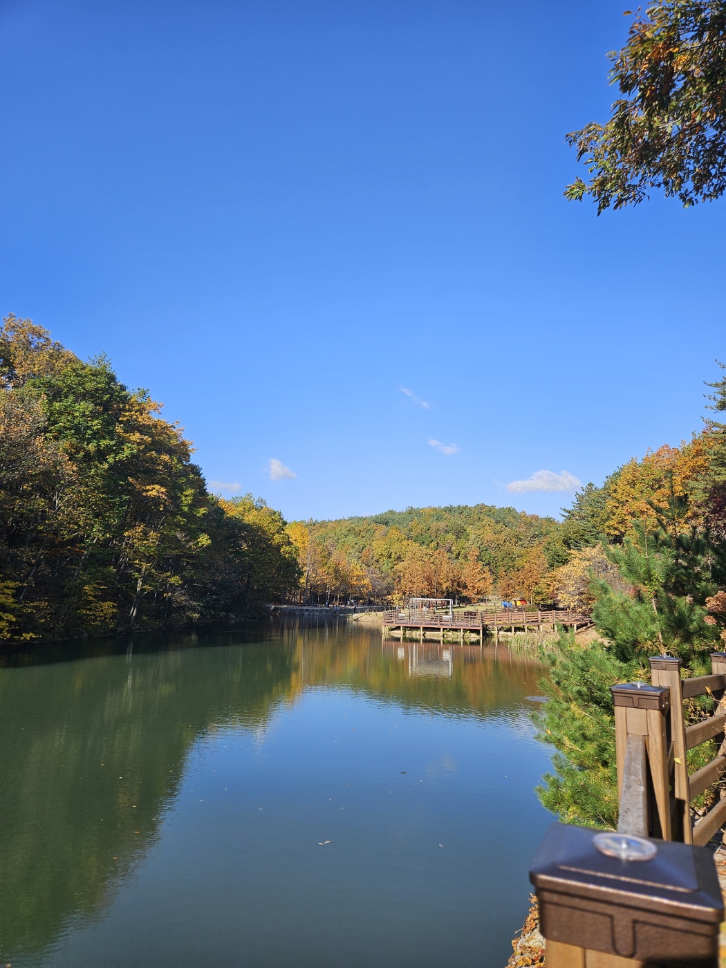 가장 오래 머문 곳은 잔잔한 호수 옆 전망데크. 물 위에 숲이 거울처럼 비치고,