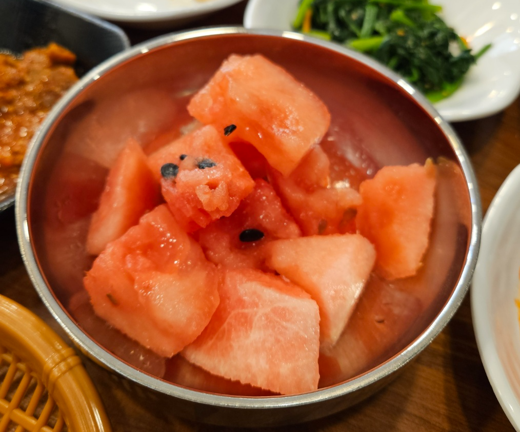 식사를 다 하고 후식으로 준비되어 있는 수박을 가져왔어요~
