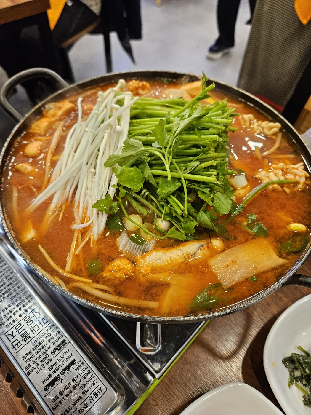 커다란 냄비에 팔팔 끓는 국물~거기에 각종 채소가 어우러져 빨리 먹고 싶더라구요~