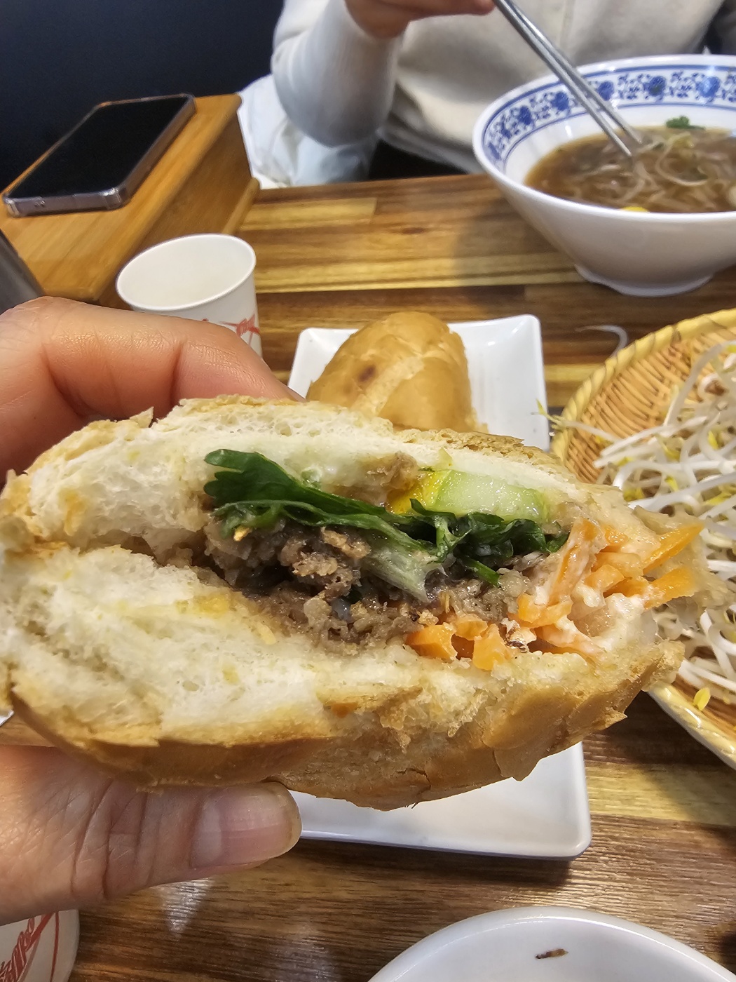 쌀국수와 함께 나온 반미는 바게트가 겉바속촉 제대로예요.