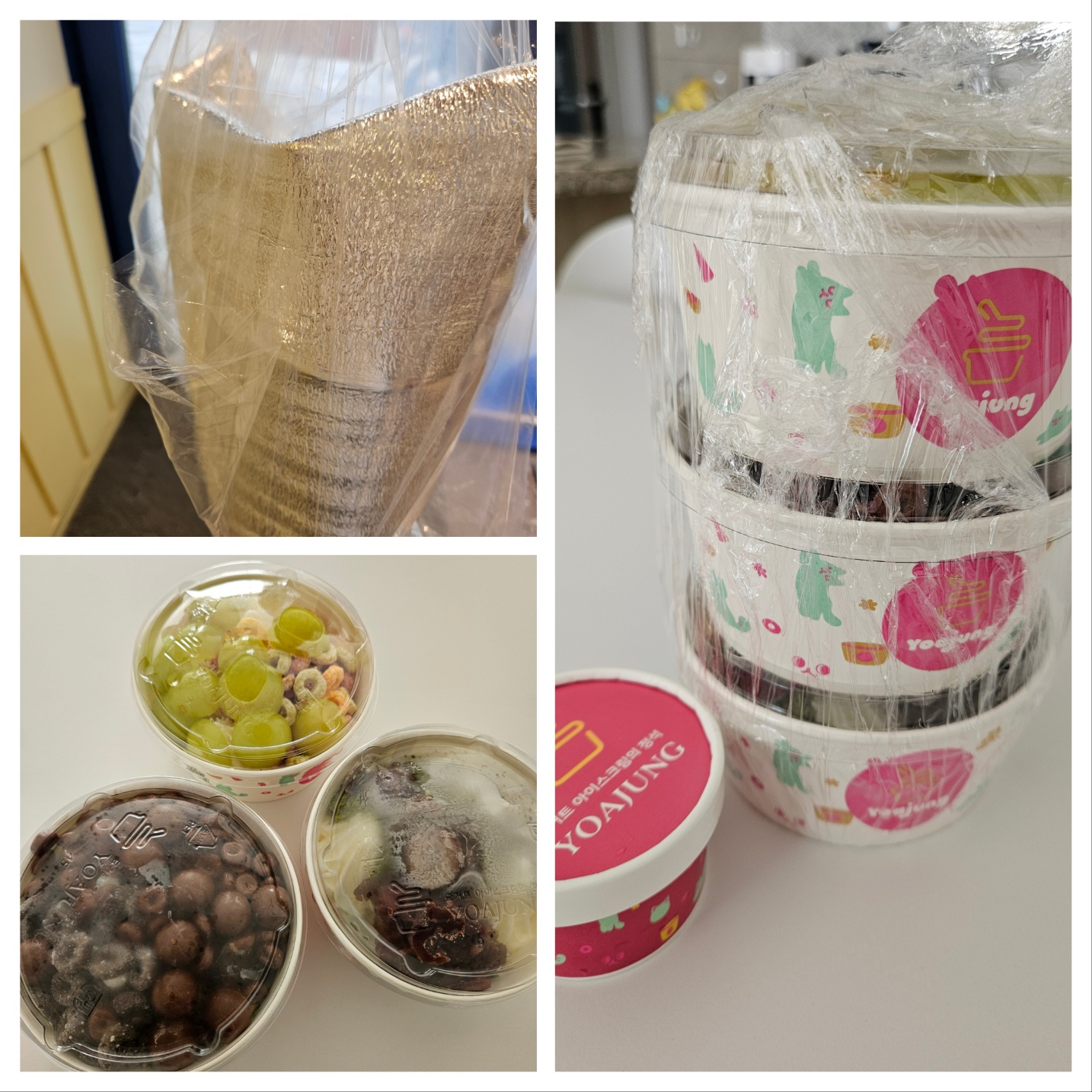 사장님이 아이스크림 용기를 여러 번 랩핑해주셔서