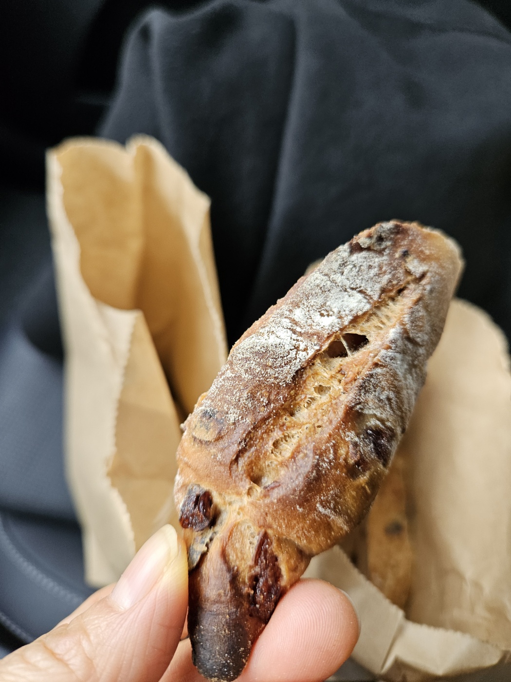 빵을 구입해서 차에 타자마자 크랜베리 호두 바게트를 하나꺼내 먹었는데~