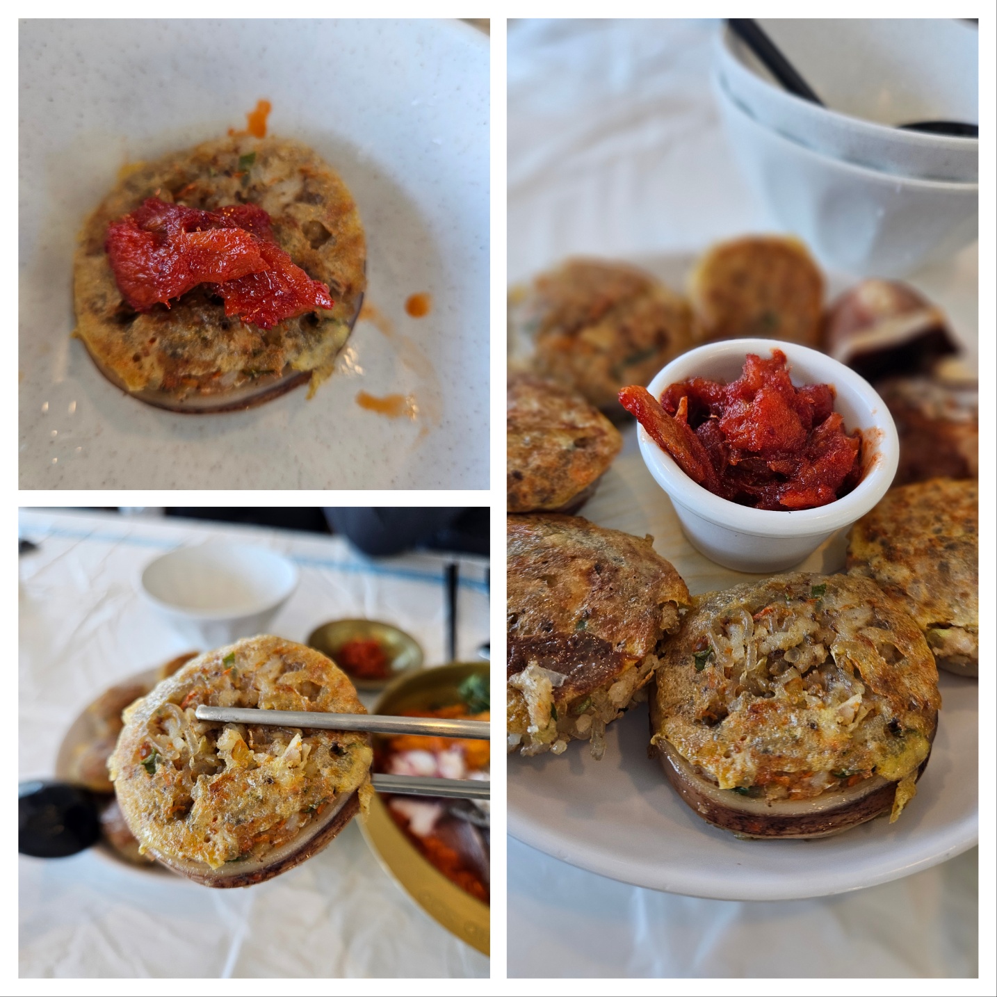 특히 도톰한 동그랑땡은 겉은 바삭, 속은 촉촉할 것 같은 오징어 순대와 어울리는 명태식혜와
