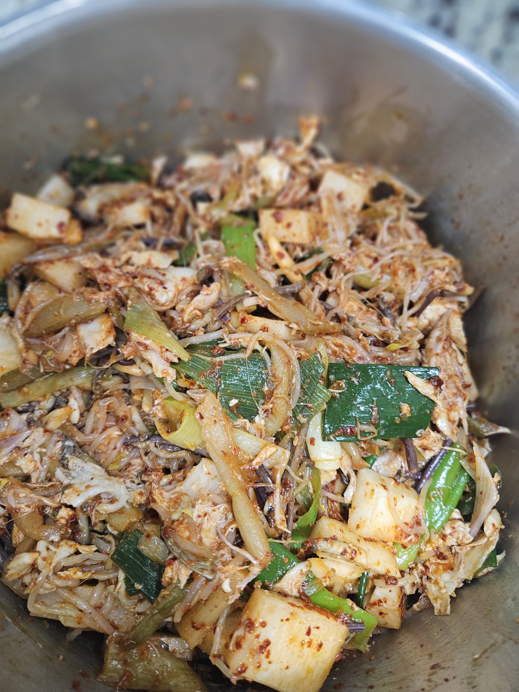 - 영계닭 (미리 삶아서 찢어둔 상태)