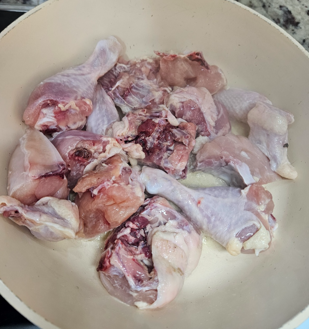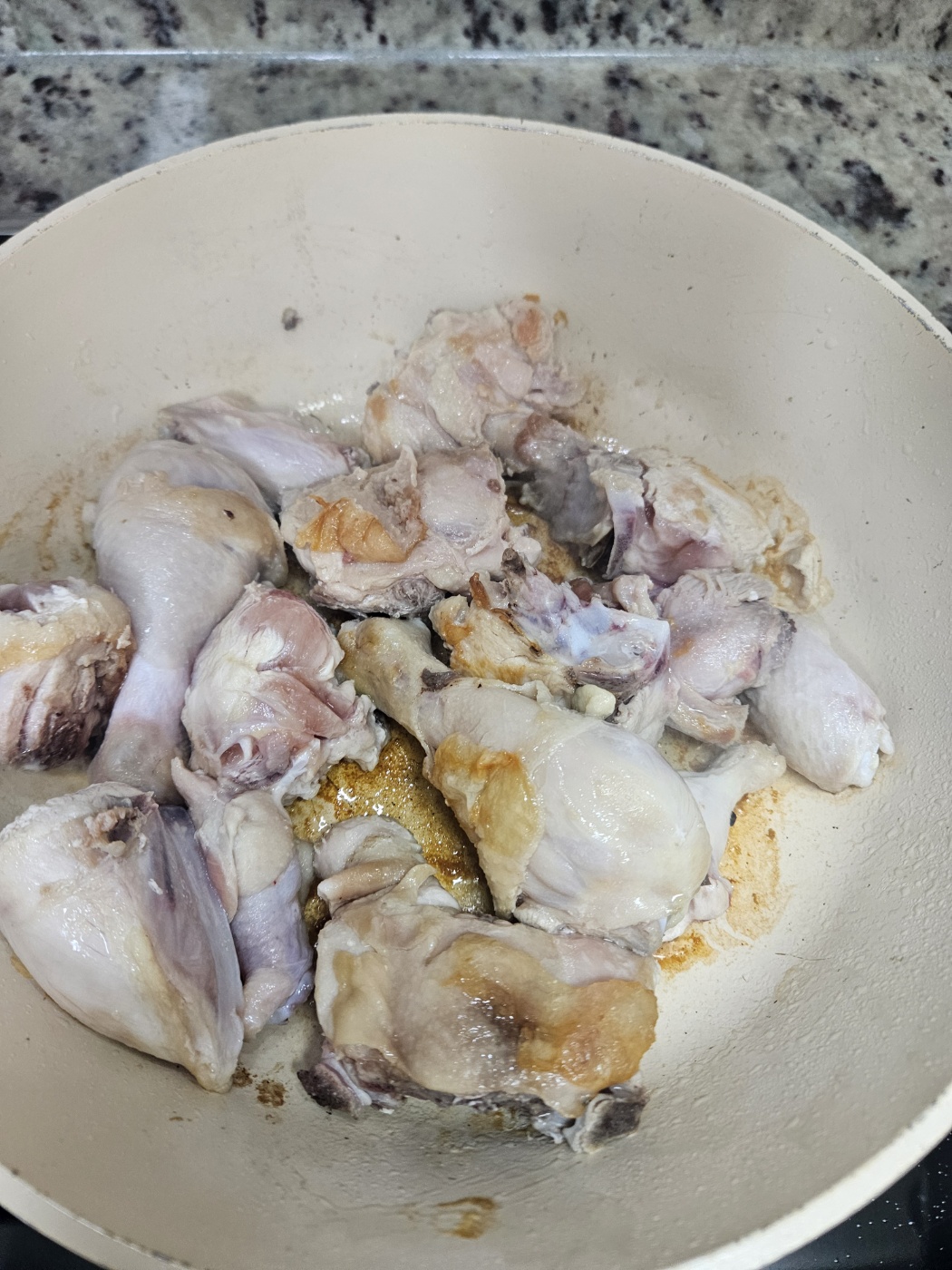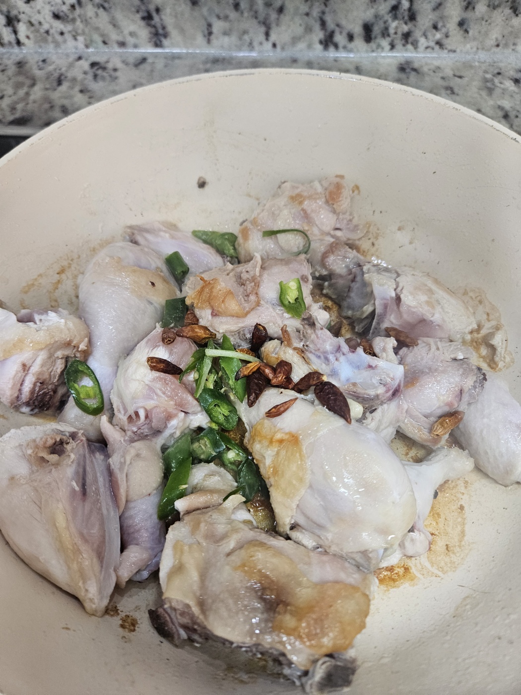먼저 냄비에 닭을 넣고 살짝 볶아주면서 잡내를 날려줬어요.