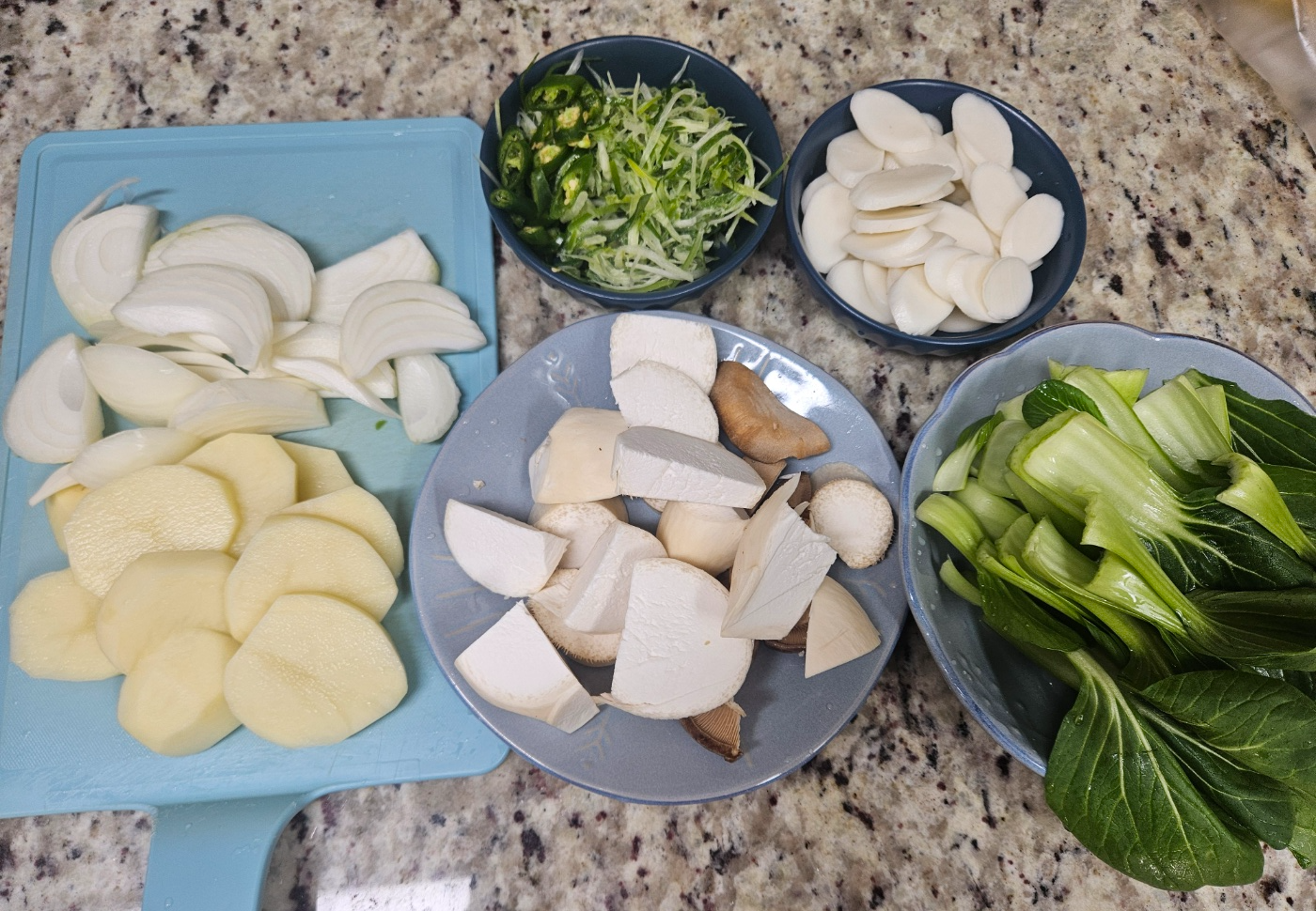 닭 한 마리에 감자, 양파, 버섯, 청경채 정도만 준비해도 집밥 느낌이 제대로 나더라고요.