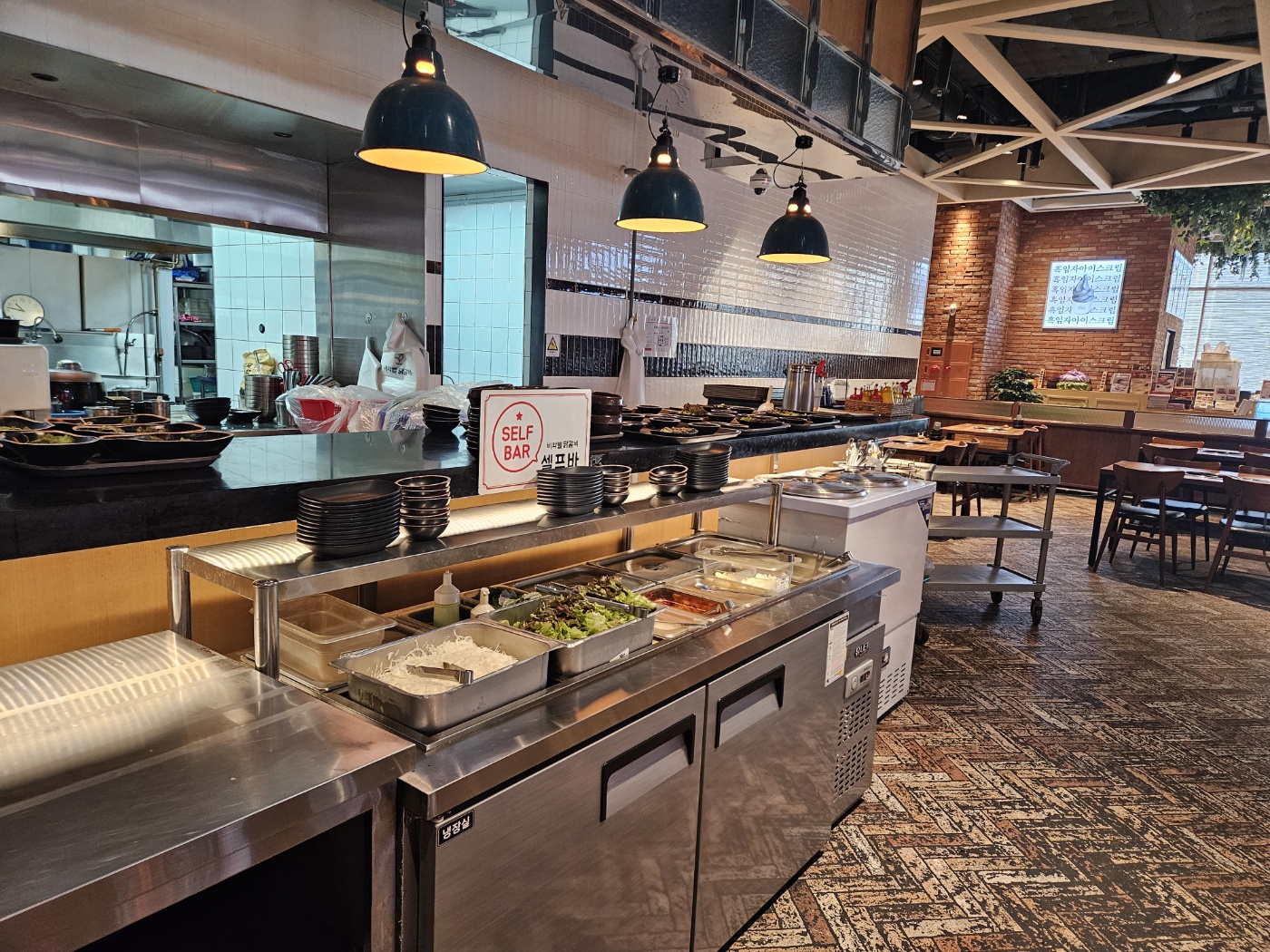 푸드코트 특성에 맞게 넓은 공간에 깔끔한 인터리어와 셀프바도 구성되어 있더라구요~