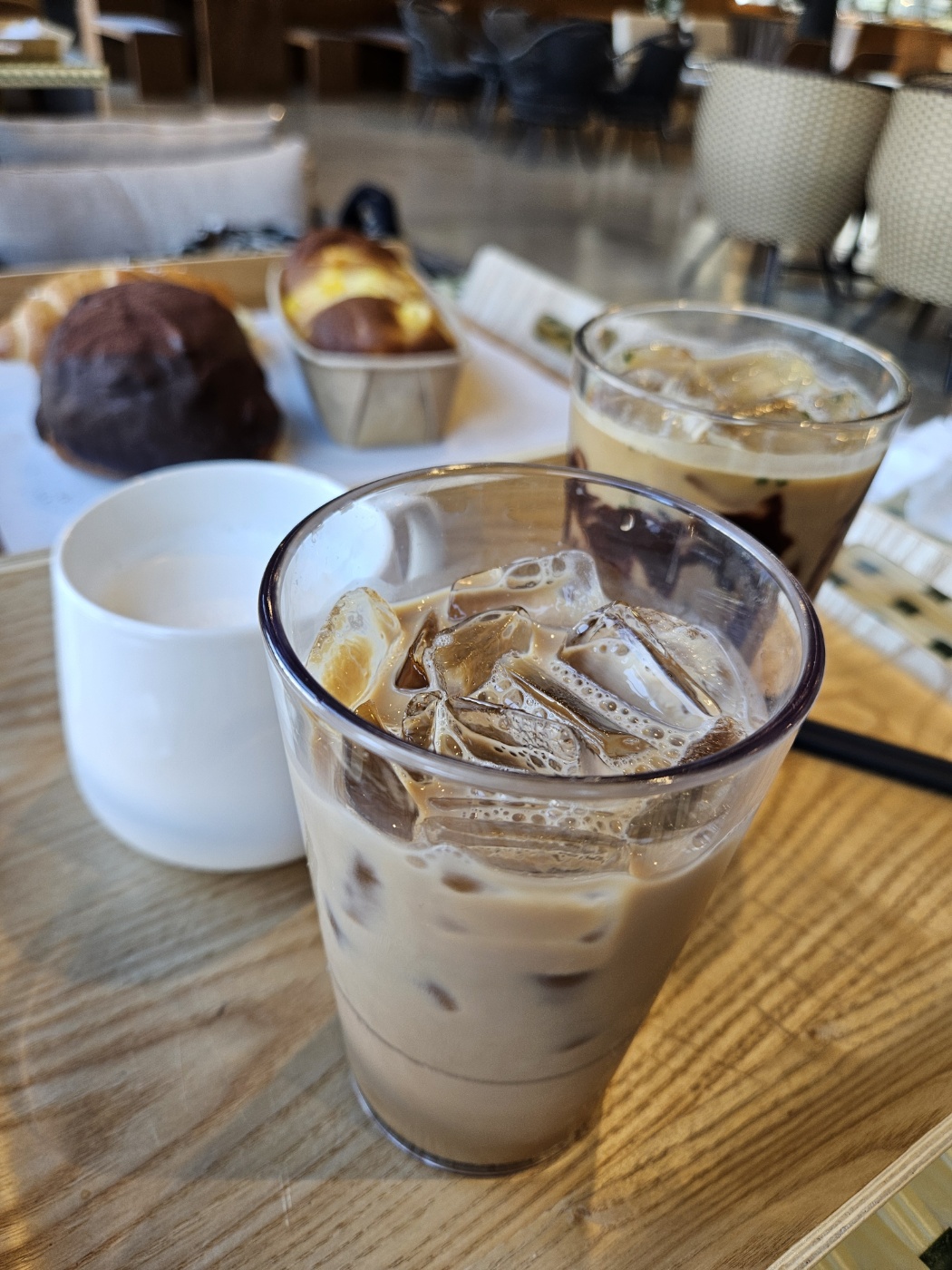 음료는 녹차초코라뗴와 리뷰 이벤트로 받은 밀크티 그리도 따듯하게 데운 우유를 시켰는데