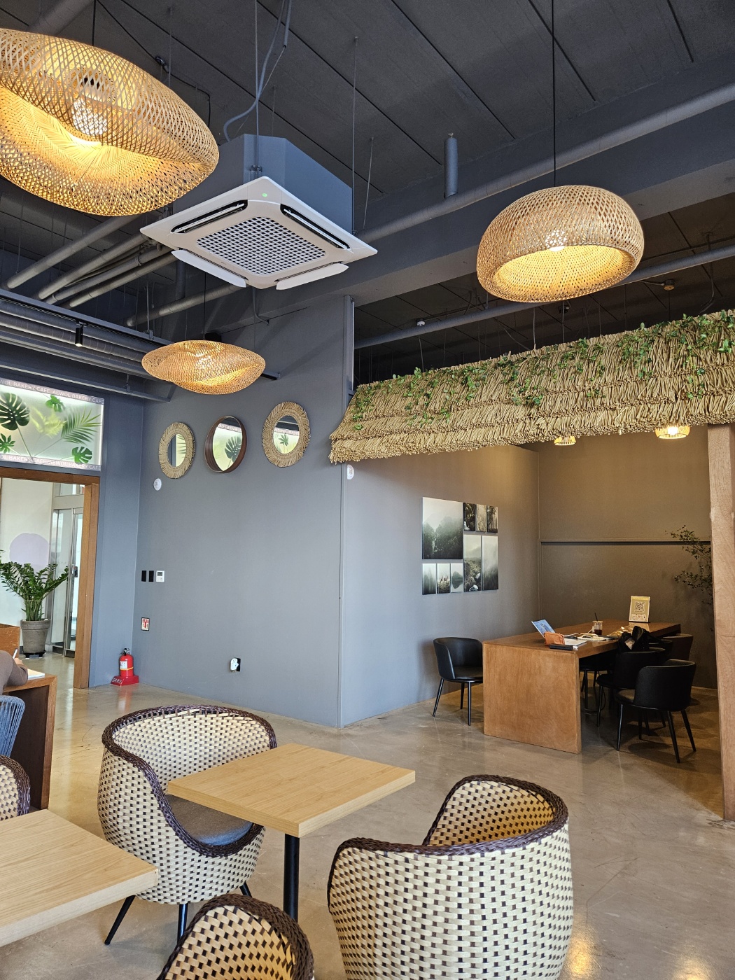 분위기: 플랜테리어 감성, 라탄조명, 여유로운 좌석